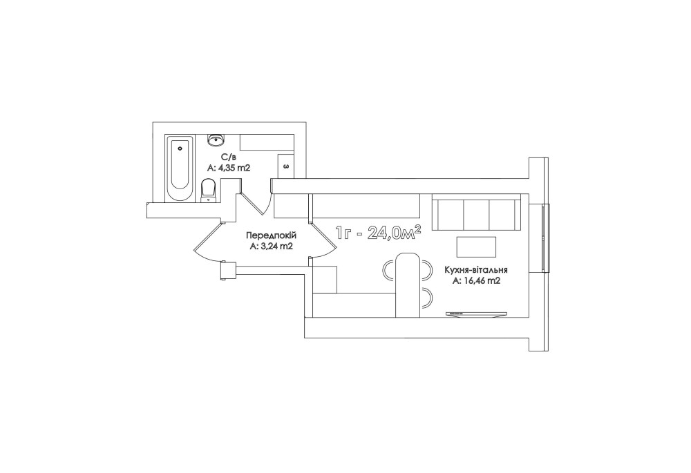 • Общая площадь 24 м2