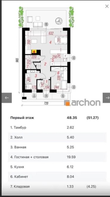 В будинку дуже продумане планування:: кухня-вітальня з виходом на терасу, кабінет, 3 спальні, 2 санвузли, гардеробна, комора.