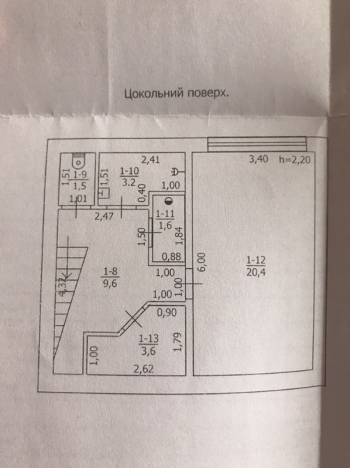 -1 поверх (напівцокольний, з вікнами, тілько нижня частина знаходиться в цоколі будівлі) – велика кімната, роздільний с/в (душева з раковиною и пральною машинкою, туалет), дві окремі господарські кімнати (можна поставити стелажі), і коридор.