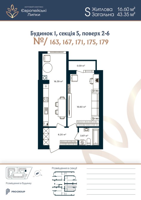 Затишна 1к-квартира 43,4 м² готова у новобудові ЖК Європейські Липки - фото 1