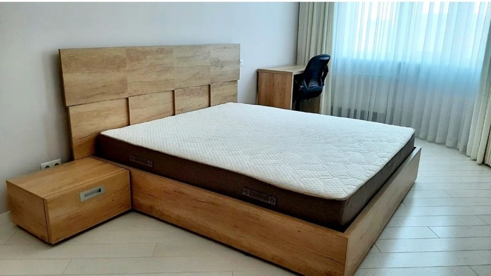 ліжко з ортопедичним матрацом з підйомним механізмом, диван розкладний, велика шафа-купе, стіл письмовий зі стільчиком,