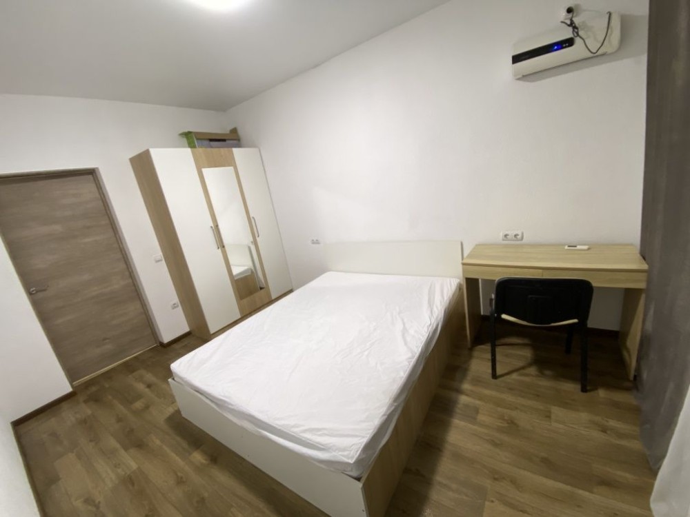 Спальня 1: Велике комфортне двоспальне ліжко, містка шафа-купе з дзеркалом, робочий стіл та кондиціонер.