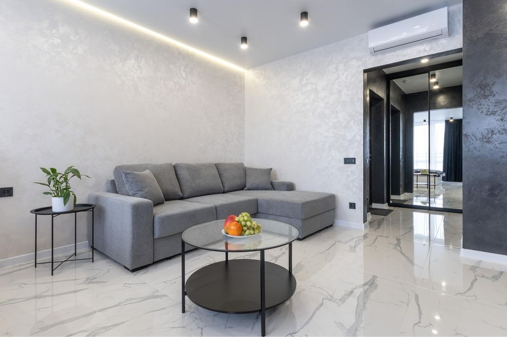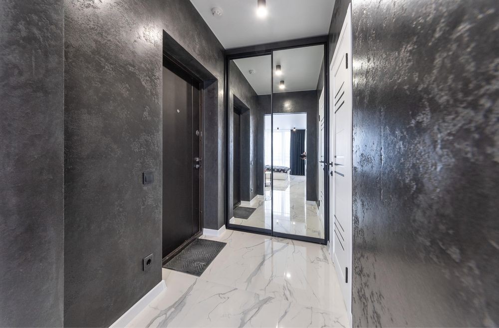 Інтер’єр квартири виконаний у сучасному стилі з використанням якісних матеріалів, що створюють атмосферу затишку та комфорту.
