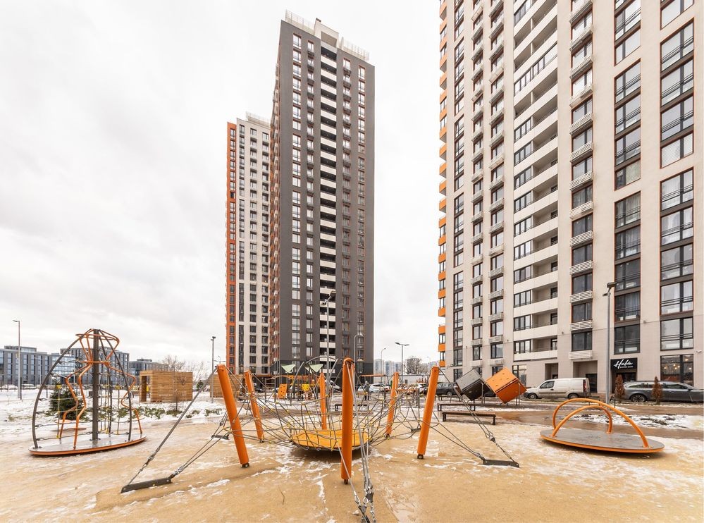 У житловому комплексі є продуктові магазини, кав’ярні, салони краси, дитячі майданчики.