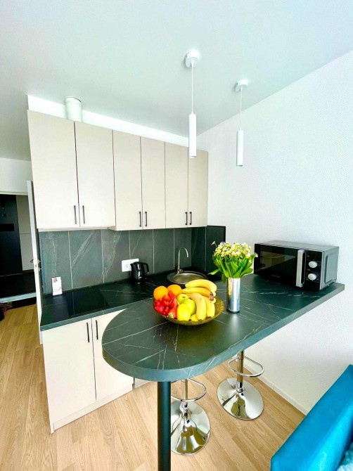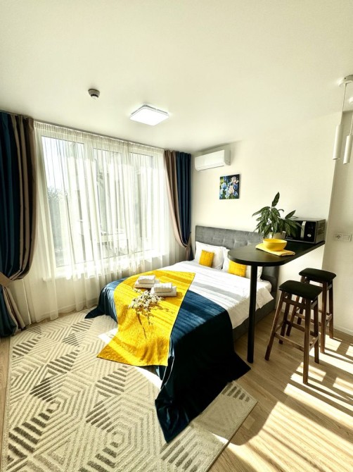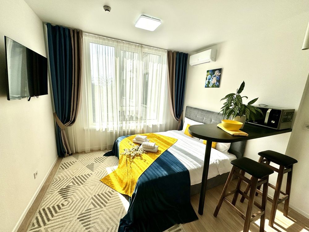 Хорошая квартира-студия в доме магазина "Виктор", меблирована, современній ремонт и дизайн, интернет, кухонные и банные принадлежности, бытовая техника. Ванна, Набор для душа, Гардероб, Охраняемая территория, Парковочное место. Отчётные документы
