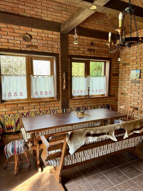 В самому будинку три кімнати і кухня-вітальня, також є мансанда, яку можна облаштувати. Деякі меблі раритетні та завезені із закордону.