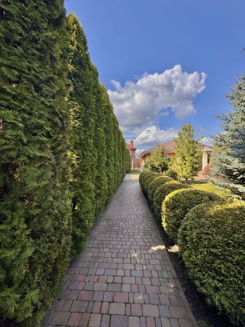 На території зроблене неймовірно гарний ландшафтний дизайн з системою автополиву Hunter. Хвойні дерева завезені із закордону, також є окремий садочок з фруктовими деревами.