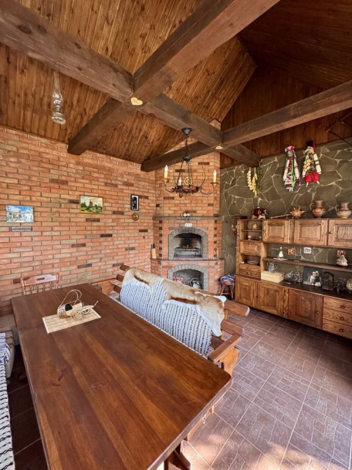 На території два будинки: один - житловий, інший з гаражем (автоматичні ворота), майстерня, а також кімната відпочинку ( барбекю зона) з каміном.