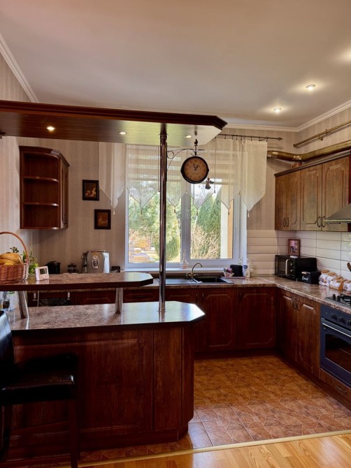 Продається цегляний утеплений будинок у центрі села Трушки. Будинок з якісним косметичним ремонтом, перекриття між поверхами — залізобетон. Є гараж із виходом у просторий підвал, а з лоджії — вихід на горище (холодне, на всю площу). У будинку два санвузли: на першому поверсі з душем, на другому — з ванною. Встановлений кондиціонер, супутникове телебачення, оптоволоконний інтернет. Вода — зі свердловини 25 м, каналізація — септик. Опалення: двоконтурний газовий котел + твердопаливний у окремій котельні. Підключено 30 кВт (3 фази). Є діюча сонячна електростанція на 10 кВт (зелений тариф), техумови на 30 кВт, інвертор, безперебійник, акумулятори на 10 кВт⋅год. На території — окремий господарський блок: літня кухня з підведеними водою та газом, сауна з басейном і кімнатою відпочинку, дровник, сарай, кладова для інвентарю. Також є затишна бесідка, вольєр для тварин. Земельна ділянка 15 соток, огороджена та доглянута. До зупинок і магазинів — 5 хвилин пішки. Ціна — 150 000 $, торг доречний. Телефонуйте — перегляд у зручний для вас час .