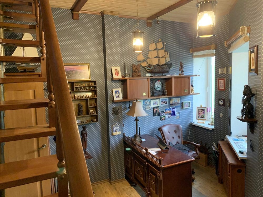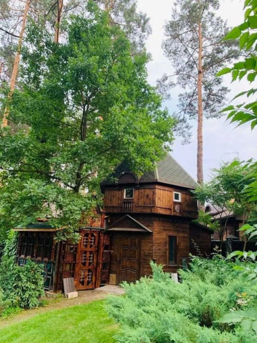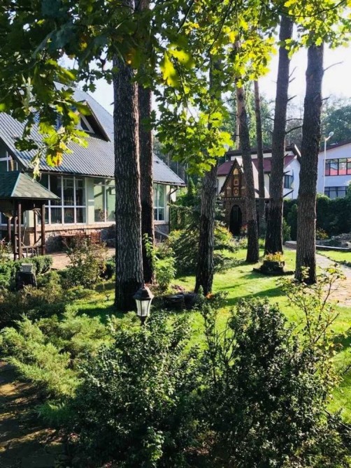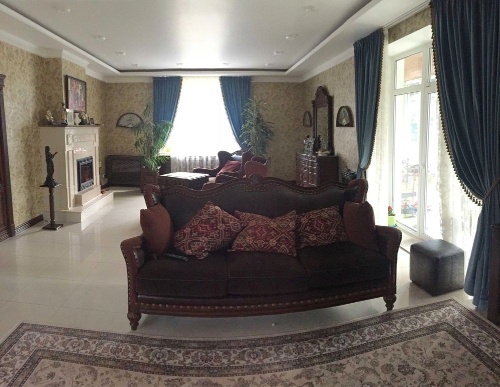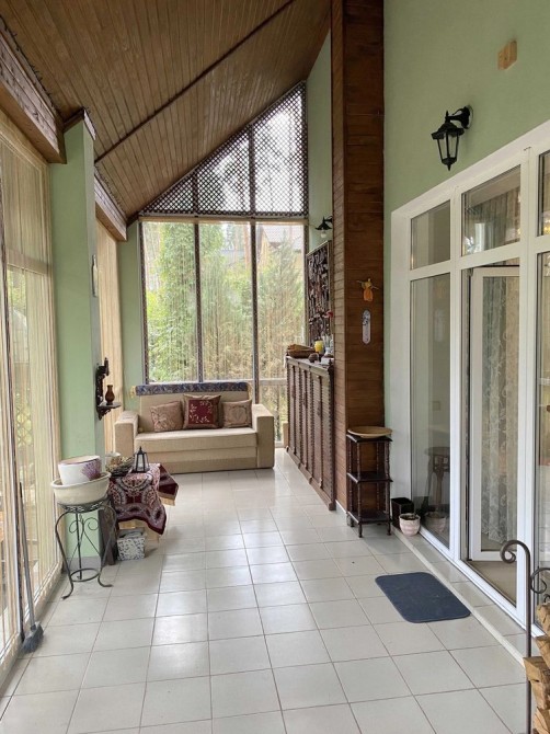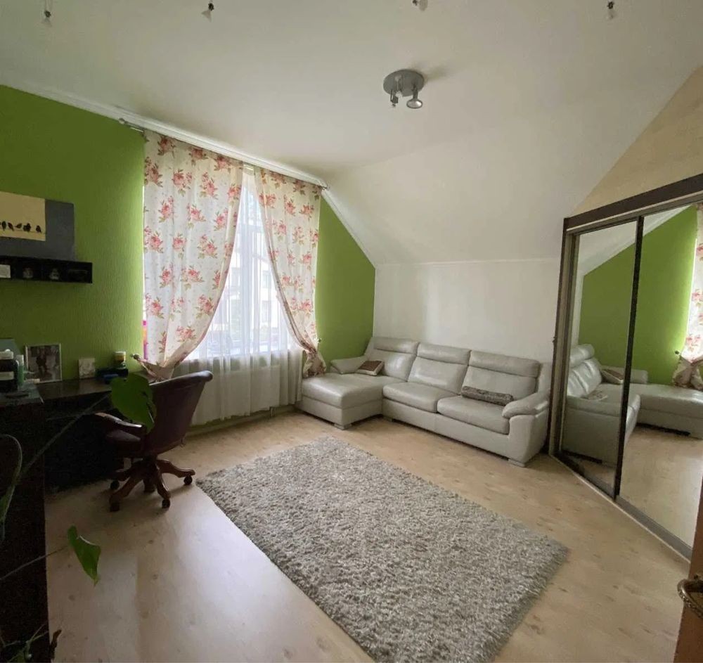 У будинку: камінний зал, кухня, їдальня, 3 спальні, кабінет, 3 з/в, сауна, тренажерний зал, котельня, пральна, крита веранда.
