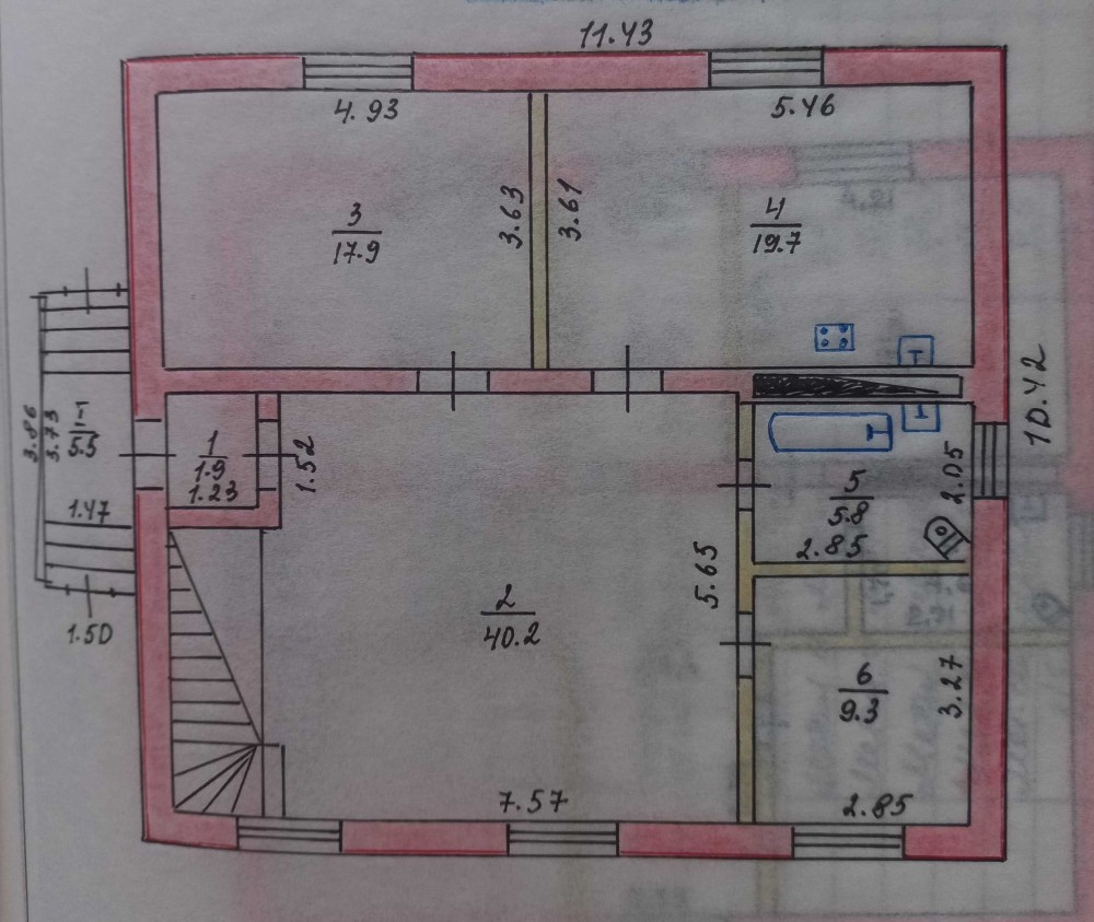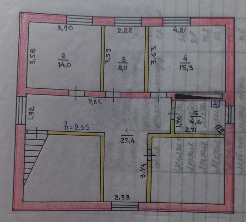 На 1 поверсі- велика кухня, зала, спальня, гостьова кімната, ванна кімната.