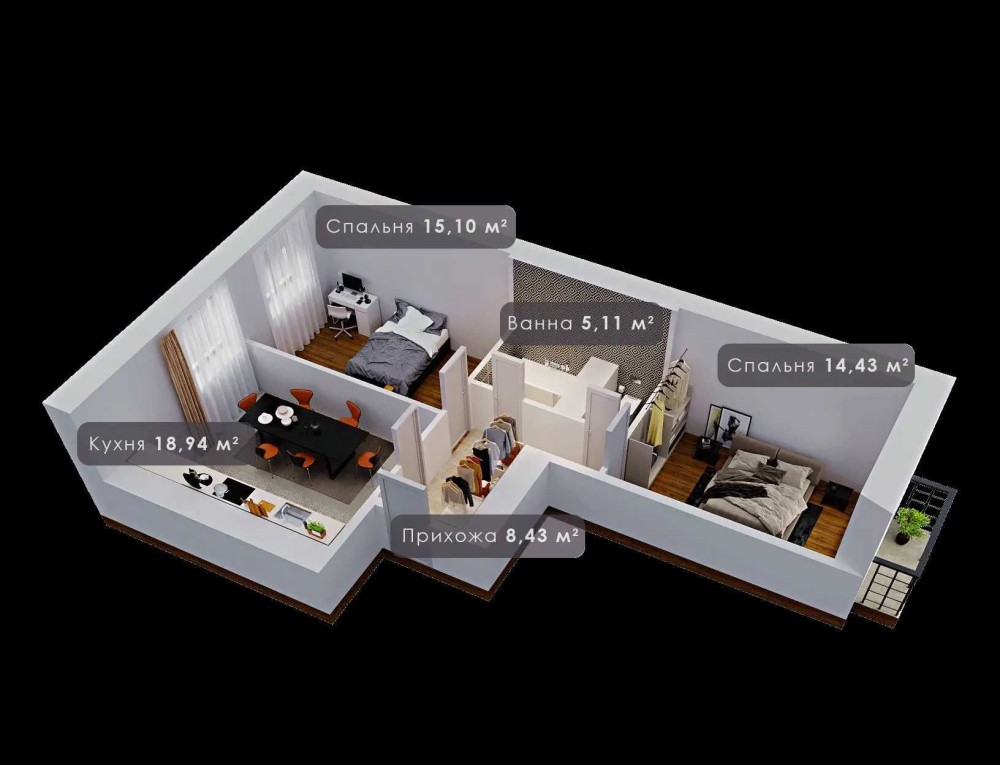 • Общая площадь 62 м2
