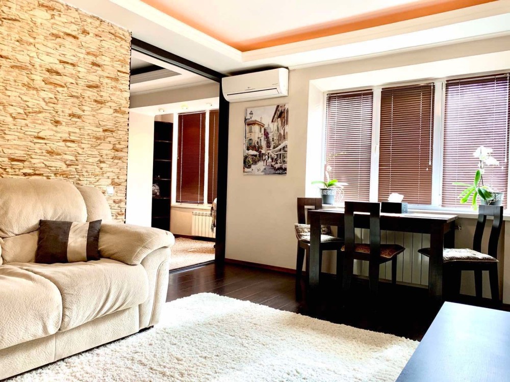 Квартира з якісним, сучасним ремонтом, повністю мебльована та обладнана всією необхідною технікою: пральна машина, бойлер, посудомийка, кондиціонер, духова шафа, газова та електрична поверхні для приготування їжі.