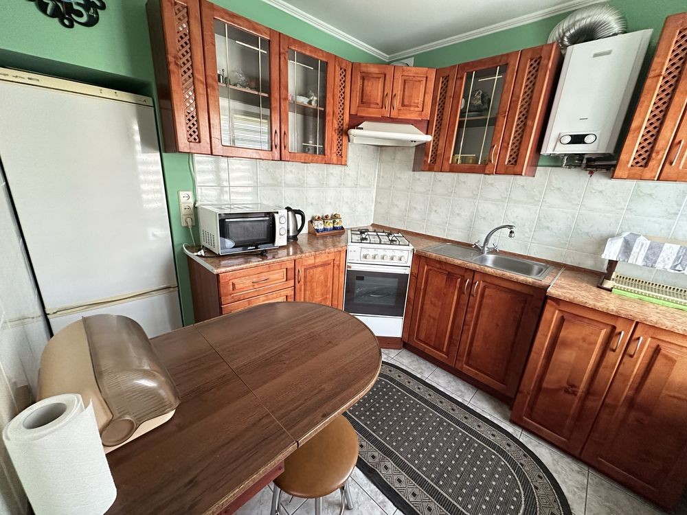 • Кухня: Повністю укомплектована меблями та технікою (газова плита, духовка, пральна машина, мікрохвильова піч, електрочайник).