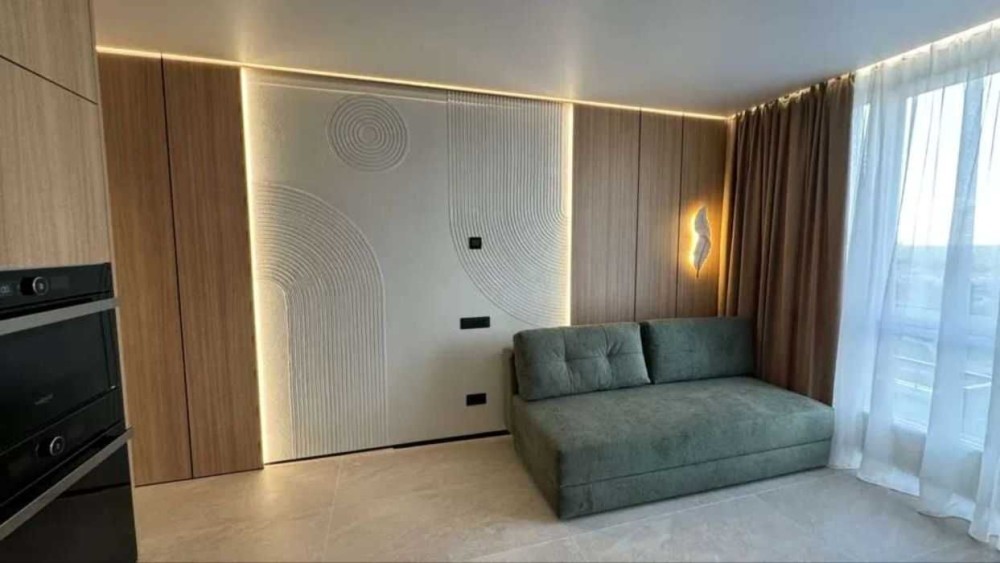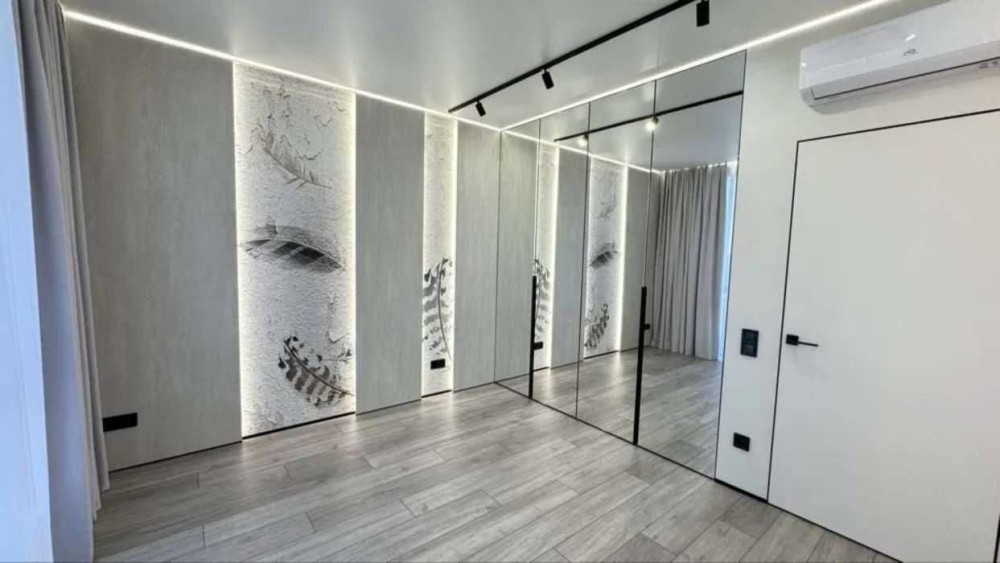 Зроблений сучасний, якісний ремонт за дизайн проєктом. В квартирі є всі необхідні меблі для проживання. Холодильник, мікрохвильова піч, духова піч, варильна поверхня , посудомийна машина, диван в кухні-вітальні та в дитячій кімнаті, 2 телевізори. Пральна машина з функцією сушки та бойлер знаходяться у технічному приміщенні, щоб не псувати інтерʼєр ванної кімнати та гостьового санвузла. У всіх кімнатах та на кухні є кондиціонери. Панорамні вікна додають простору та світла. На вікнах тюль та штори в усіх кімнатах та на кухні. В спальні є велике двомісне ліжко з ортопедичним матрацом та величезна шафа для зберігання речей. В коридорі та дитячій також велика шафа для речей. В квартирі реалізовано багато різних підсвіток з перехідним вмиканням та вимиканням, на стінах панелі та декор з високоякісної італійської штукатурки, тепла підлога. В будинку є обладнане укриття, в яке можна спуститись на ліфті.