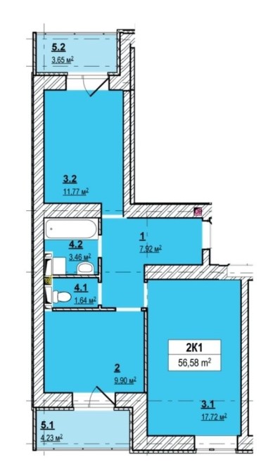 • Общая площадь 60 м2