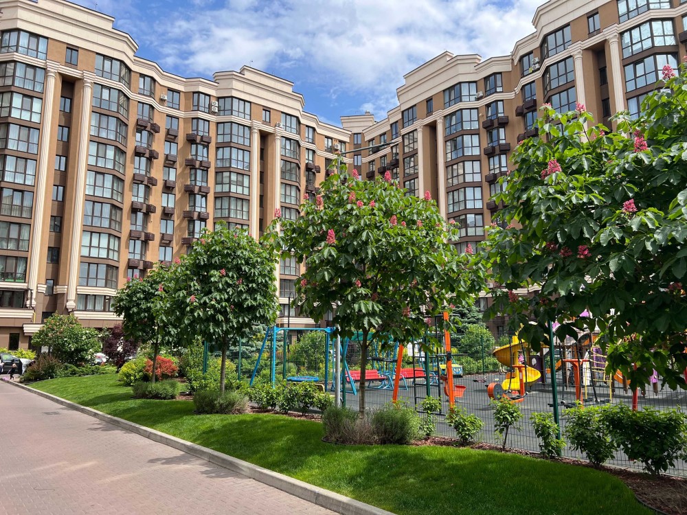 Цей комплекс має закриту територію та цілодобове відеоспостереження для вашої безпеки. Він також має привабливий ландшафтний дизайн та розвинену інфраструктуру. Поблизу розташовані дитячі садки, кафе, ресторани, безліч магазинів, спортивні майданчики та супермаркети. До станцій метро "Житомирська" та "Теремки" можна легко дістатися за 20 хвилин.