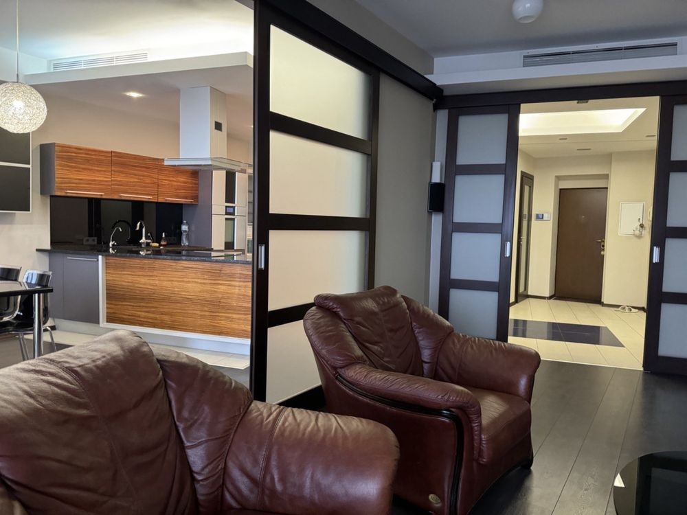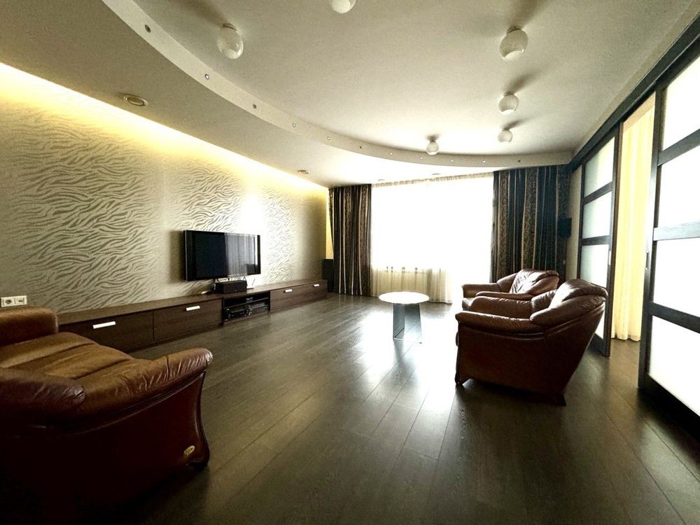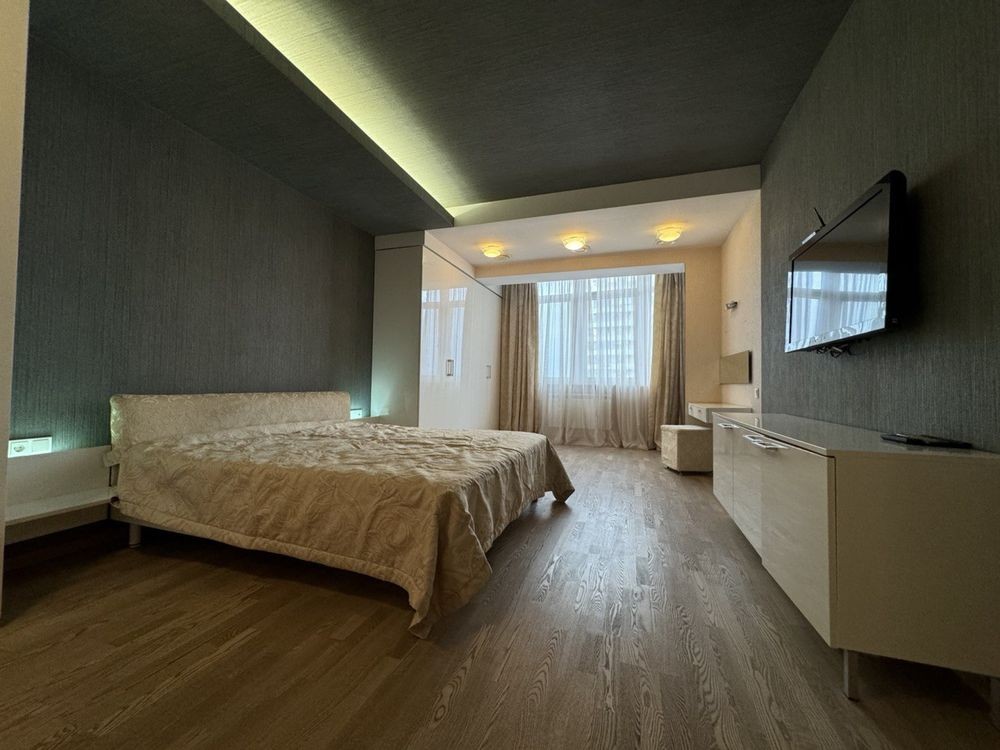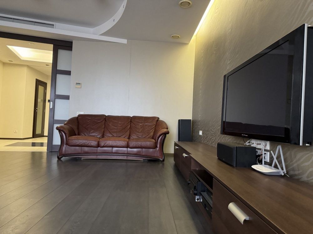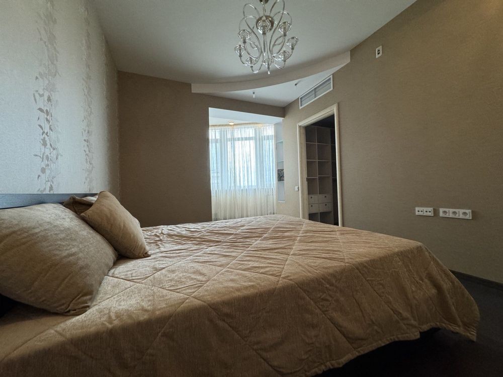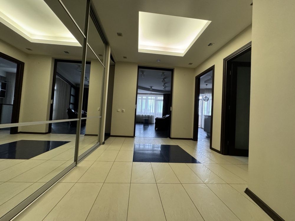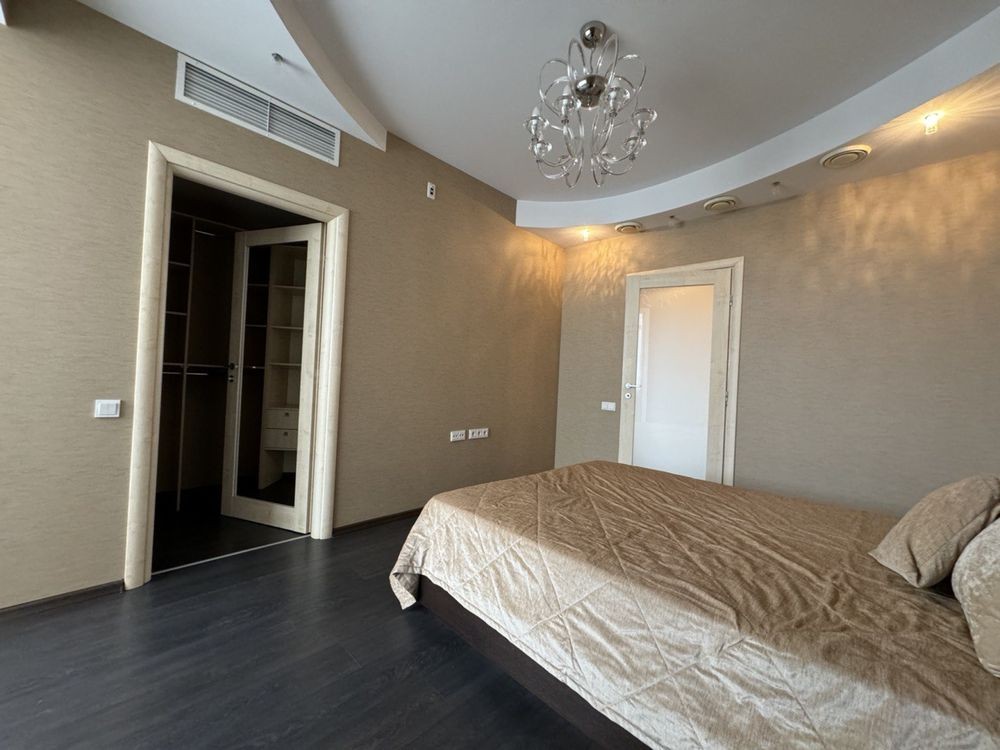 Здається 4 кімнатна квартира, дві спальні, кабінет з диваном, окрема вітальня, два санвузла, дві гардеробі кімнати, скляний балкон. Тепла підлога, к квартирі є парковка в підземному паркінгу на одне авто. два ліфти. Кришна котельня .