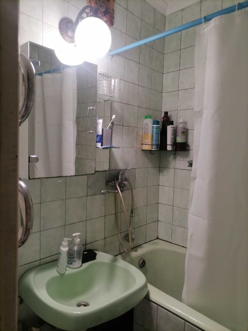 Общий санузел на 3 комнаты с душевой кабиной бойлером и стиралкой.