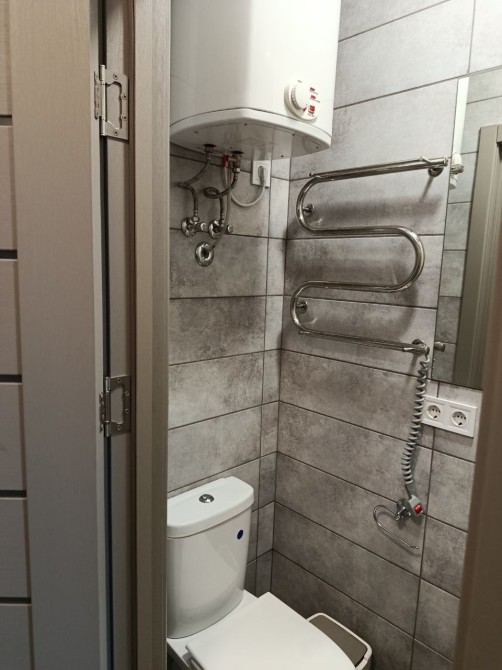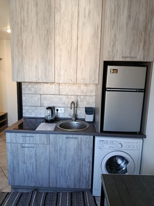 В квартире есть бойлер, кондиционер, стиральная машина, холодильник, варочная панель, диван, шкаф.