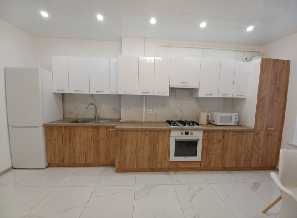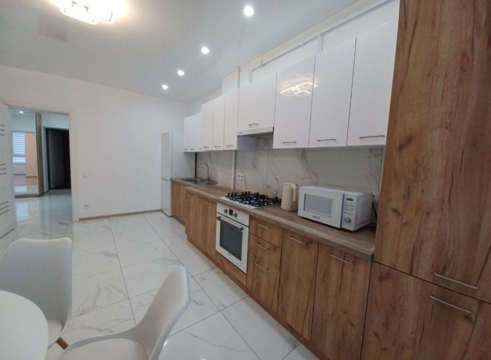 Велика кухня правильної форми , збільшенний санвузол ,підігрів підлоги (кухня, коридор, ванна кімната)