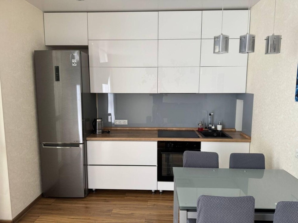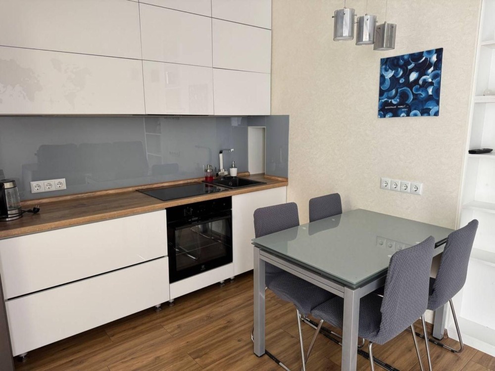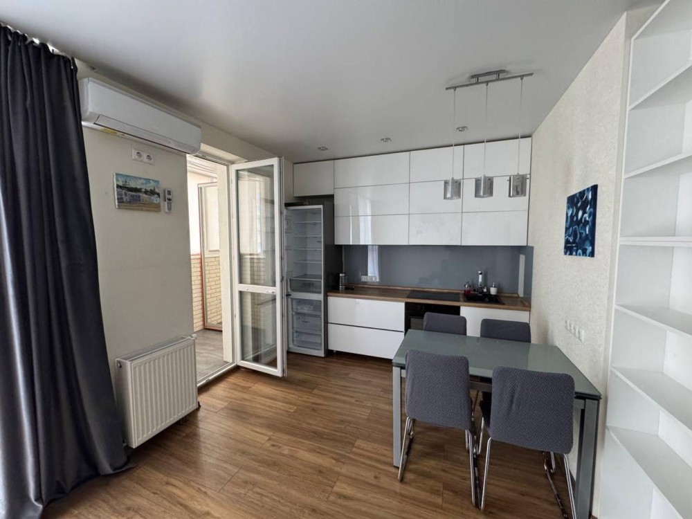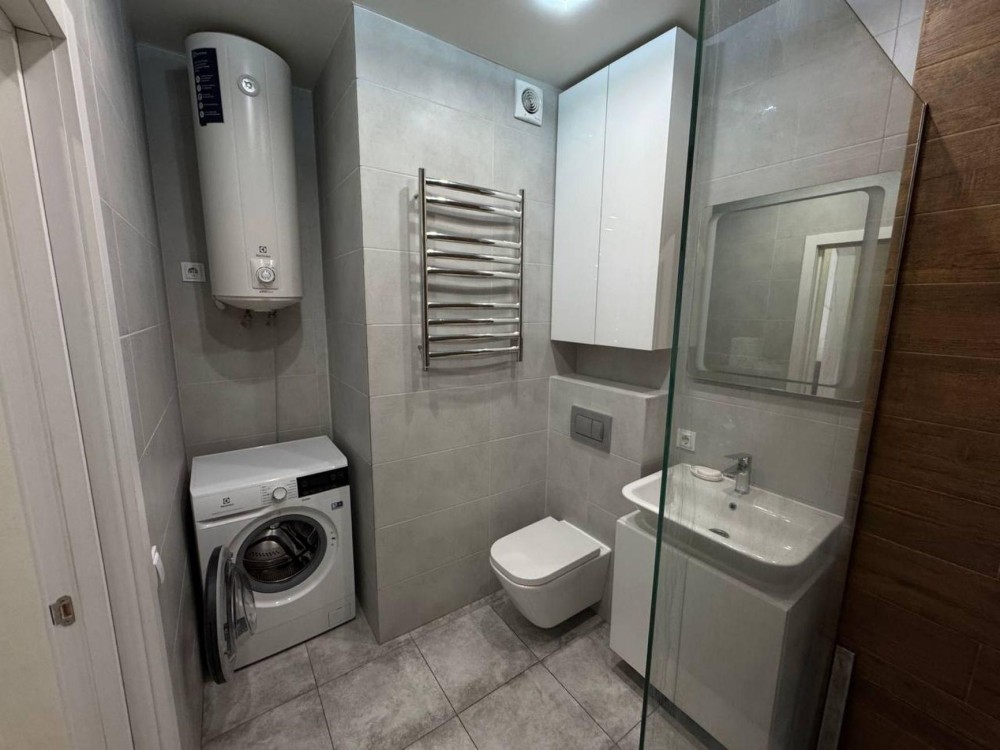 Євроремонт, меблі: два дивана 160х190, 160х200. Побутова техніка (Electrolux): витяжка, варильна панель, духова шафа, холодильник, електрочайник, телевізор, кондціонер, пральна машина, бойлер 80л. Фільтраційна система на вхід на квартиру і на очищення питної води. Інтернет, Wi-Fi. При відключеннях вода в квартирі є і з хорошим тиском. Балкон з шафою. Новий будинок, консьєрж. В будинку акумулятори і генератор. Ліфт працює 12 годин без світла. Закритий смітник і парковка у дворі. Добре розвинена інфраструктура. Поряд Сільпо, Леруа Марлен, Епіцентр, АТБ.