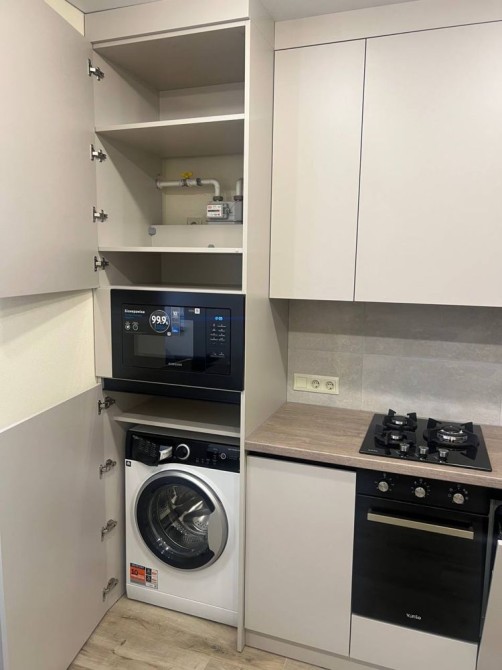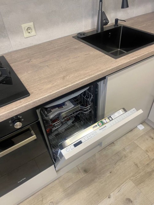 -повністю наповнена всією необхідною технікою (пралка, посудомийка, духова шафа, мікрохвильова піч, пилосос , чайник та ін )