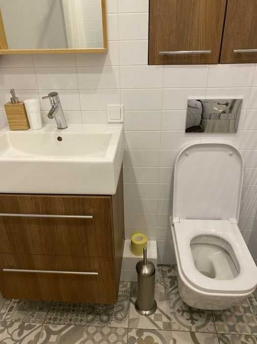 Планування передбачає два санвузли — з душовою кабіною та ванною, а також простору гардеробну кімнату. Встановлено лічильники тепла.