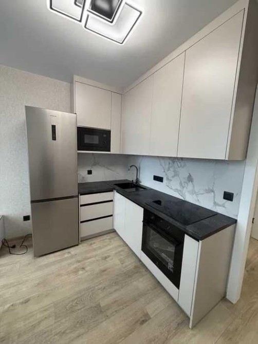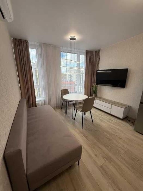 Євроремонт, меблі (двоспальне ліжко, двоспальний розкладний диван). Побутова техніка: витяжка, варильна панель, духова шафа, мікрохвильова піч, посудомийна машина, холодильник, електрочайник, телевізор, кондціонер, пральна машина та сушка, бойлер. Інтернет, Wi-Fi. Квартира затишна та світла. Новий будинок, консьєрж. Закрита територія, охорона, відеоспостереження. Гарний ландшафтний дизайн. Добре розвинена інфраструктура. Порят дитячий майданчик, супермаркет, кафе. До метро Видубичі 15 хвилин пішки. Ідеально підходить для пари або однієї людини. Можлива оренда з маленьким песиком