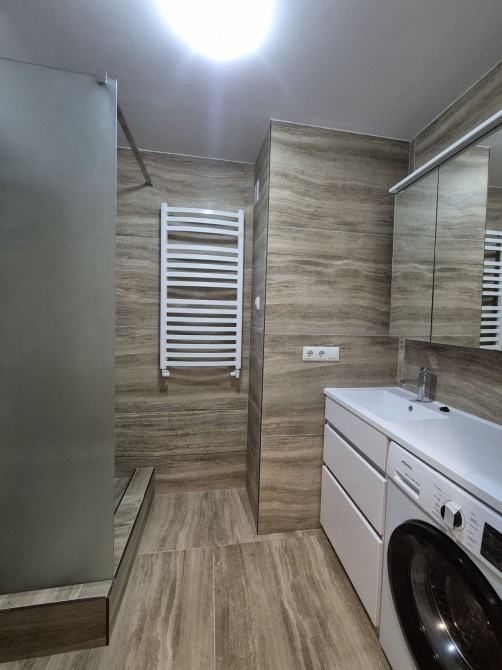 - Простора кухня-студія з виходом на терасу; - Два санвузли: один з душовою кабіною, інший з ванною; - Гардероб; - Затишна спальня з власною ванною кімнатою; Для максимального комфорту встановлено: