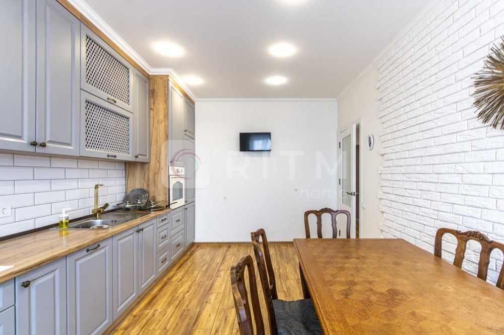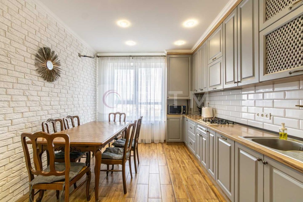 Житло дуже світле завдяки великим вікнам та вдалому розташуванню. Виконаний якісний сучасний ремонт із використанням дорогих матеріалів. У квартирі встановлено систему теплої підлоги ,що забезпечує комфорт у будь-яку пору року, та підведена охорона.