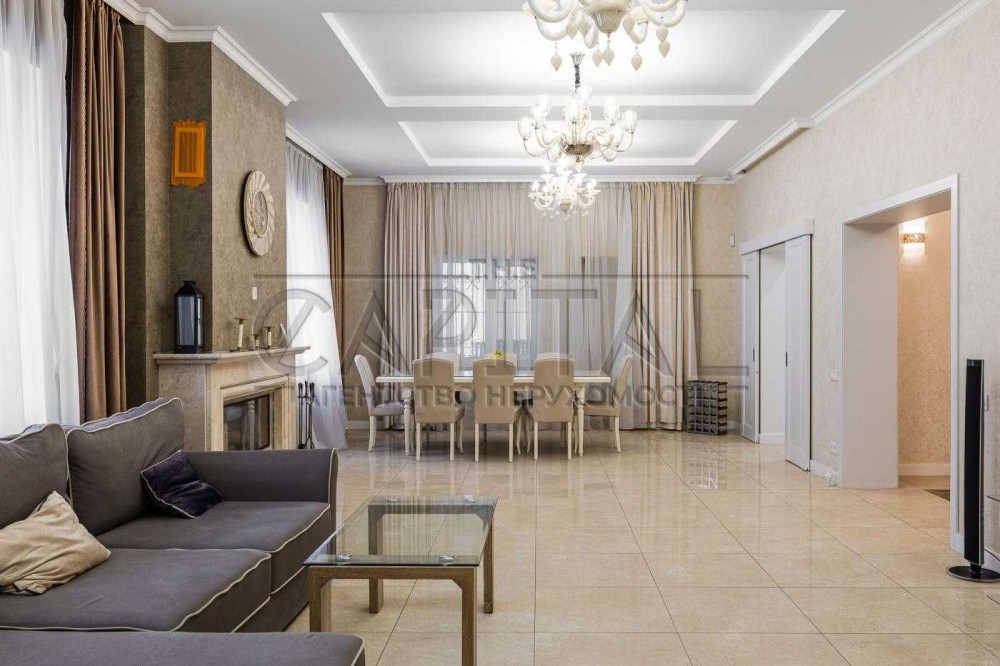 • Площа: 650 кв.м, 4 рівні, 15 кімнат, 8 санвузлів, 3 гардеробні, теплий гараж на 2 автомобілі.