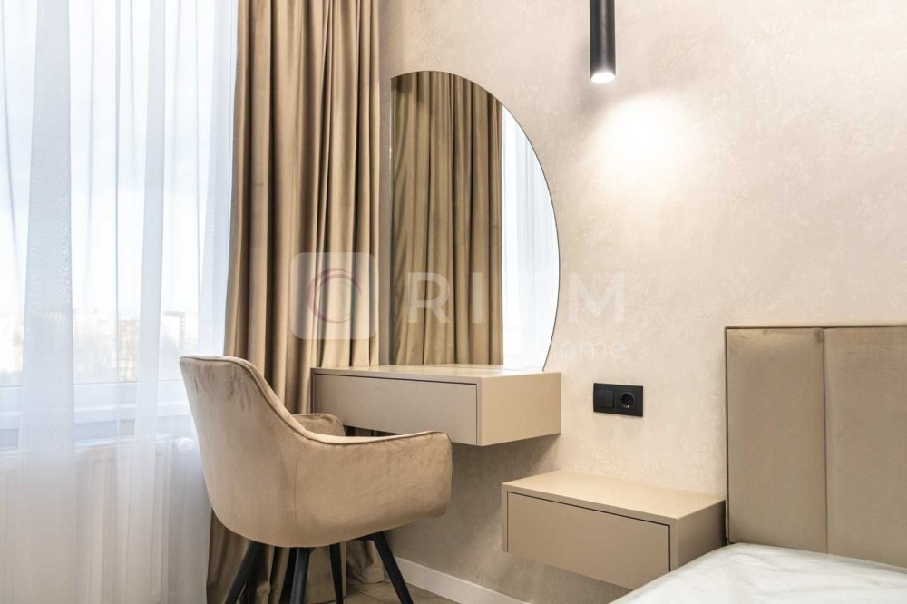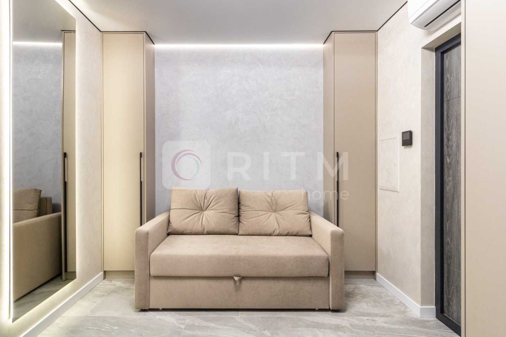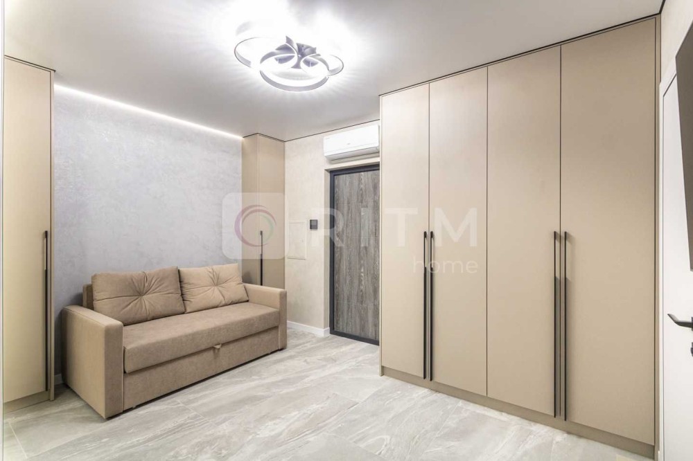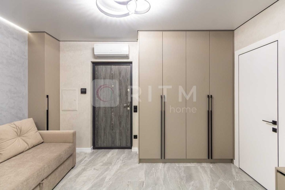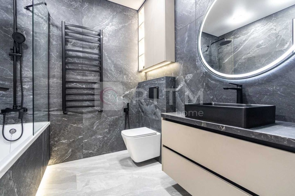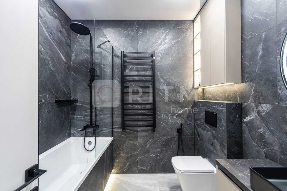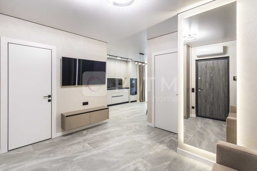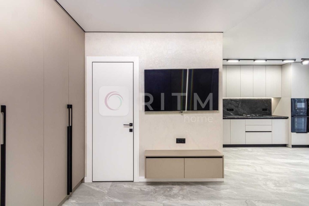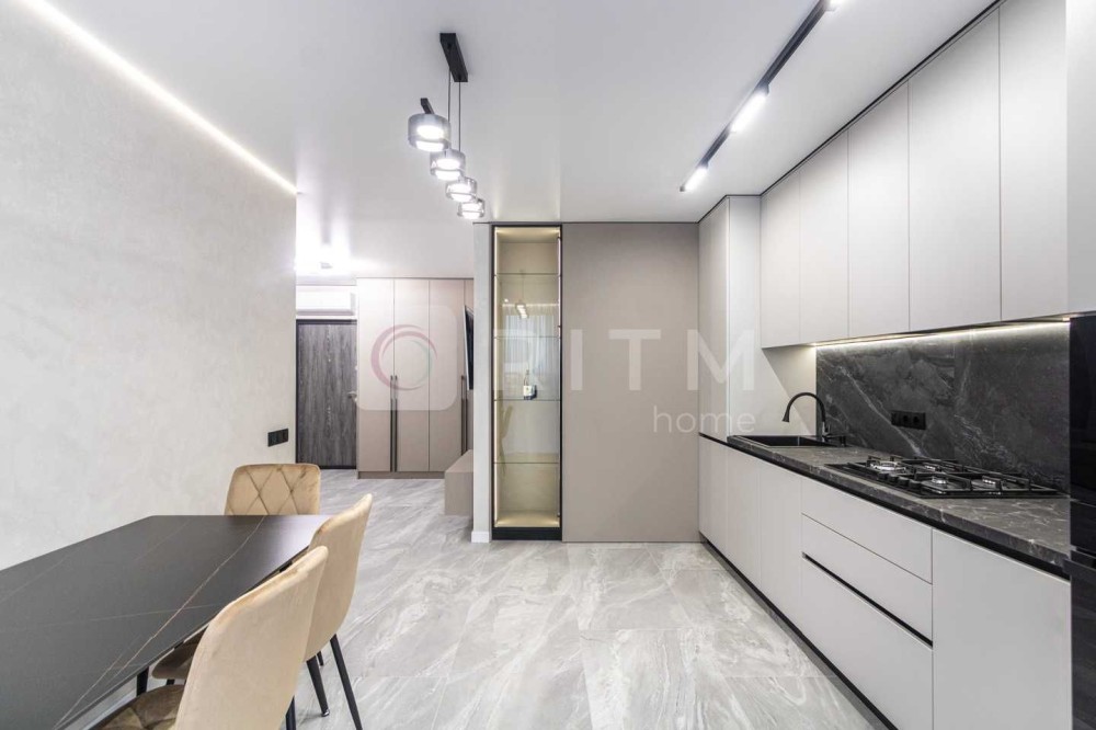 Ремонт виконаний із якісних та дорогих матеріалів: широкоформатна плитка, декоративна штукатурка, продумане контурне освітлення по всій квартирі. Кухня оснащена всією необхідною технікою Whirlpool. Встановлений кондиціонер з режимами охолодження та обігріву.
