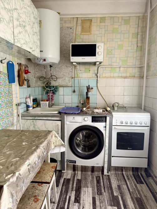 Хороший житловий стан, є необхідні меблі та побутова техніка - двоспальне ліжко, розкладний диван, телевізор, бойлер, пральна машина, холодильник, мікрохвильовка.