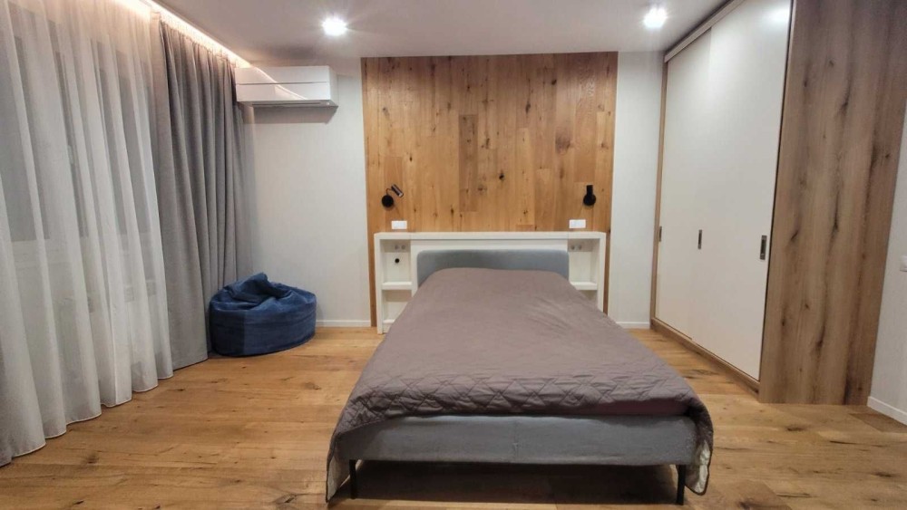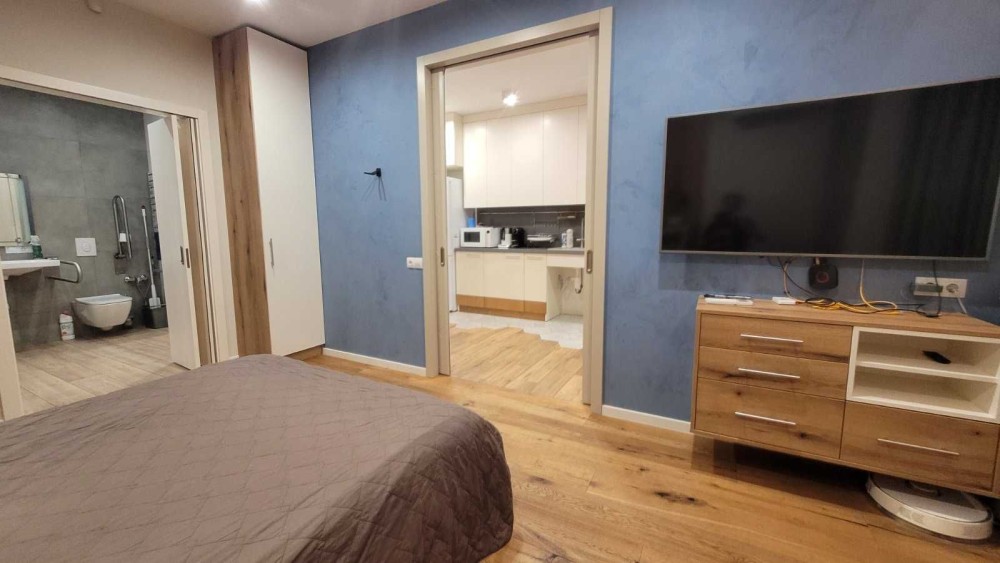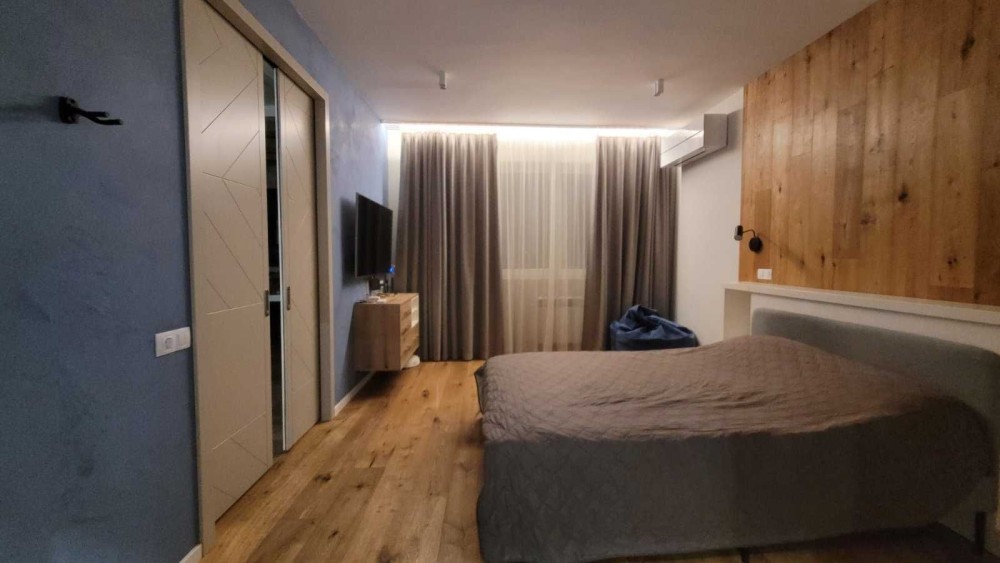 Мінський масив, вулиця Кондратюка 3, ЖК Міністерський. Закритий житловий комплекс, охорона комплексу, консьєрж, відеоспостереження. Генератор на все ( при відключенні світла працюють ліфти, водопостачання, опалення). Будинок дуже теплий, цегляний, утеплений. Тихе затишне місце. Поряд ліс, магазини, зупинка транспорту, медичні заклади, дитячий майданчик. Квартира з дизайнерським євроремонтом, видова. Ремонт робили для особистого проживання. Здається вперше. Поли частково з підігрівом, паркет у кімнаті. Укомплектована всією необхідною сучасною технікою і меблями. 2 нові телевізори, бойлер, пральна і сушильна машини, 2 кондиціонери і т.д. Двоспальне ліжко з ортопедичним матрацем, шафи-купе, посуд. Зарядна станція на 4 Квг. Пилосмок : робот і акумуляторний. Квартира обладнана сигналізацією. До метро Мінська - 15 хв. на транспорті.