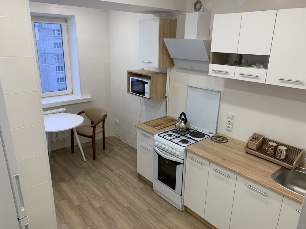 Квартира в новобудові з ремонтом. Є вся необхідна побутова техніка, двоспальне ліжко. Квартира сонячна, вікна виходять у тихий двір. Є кладовка між поверхами.