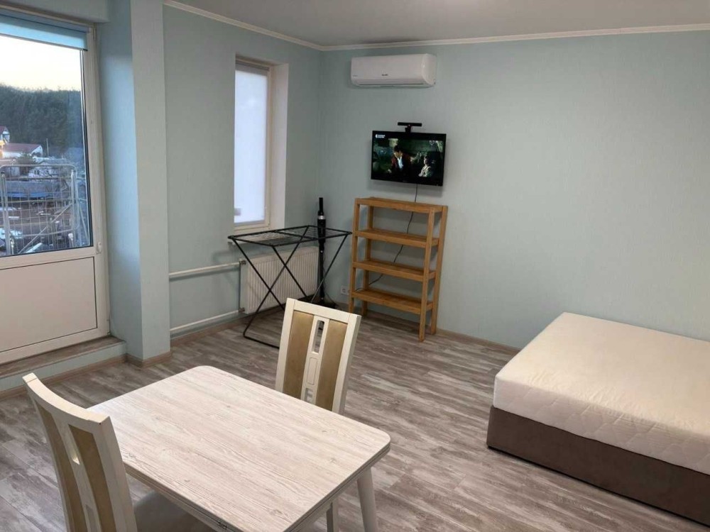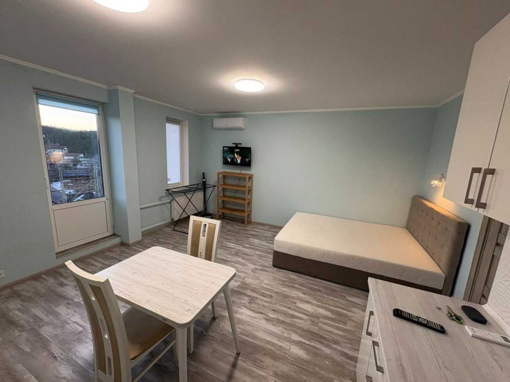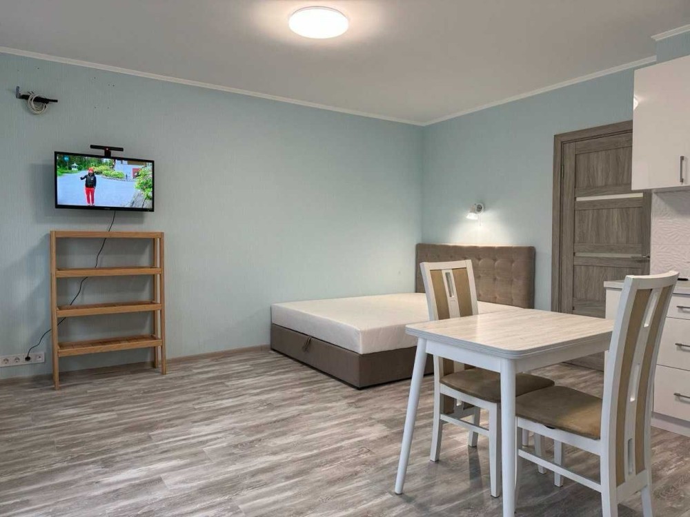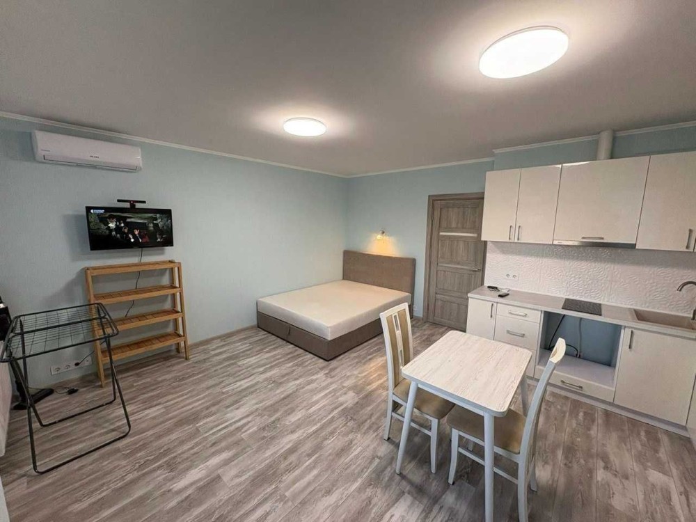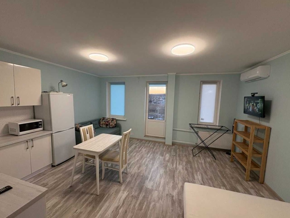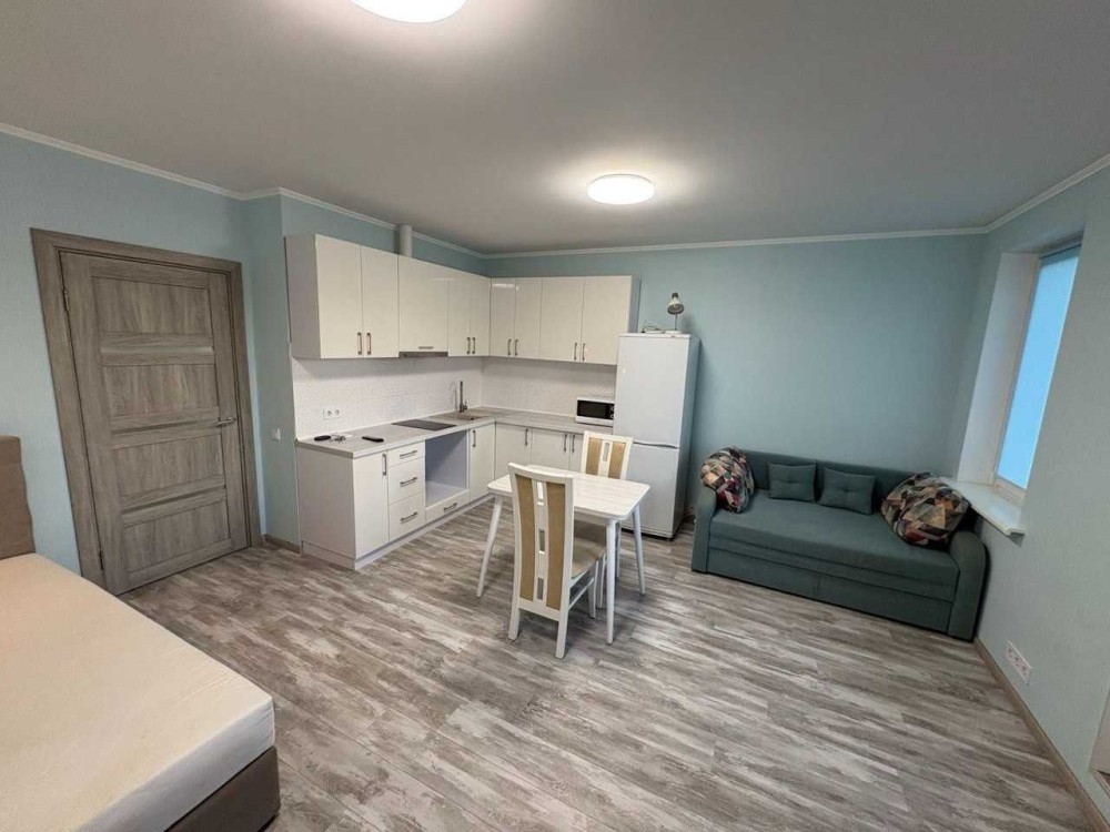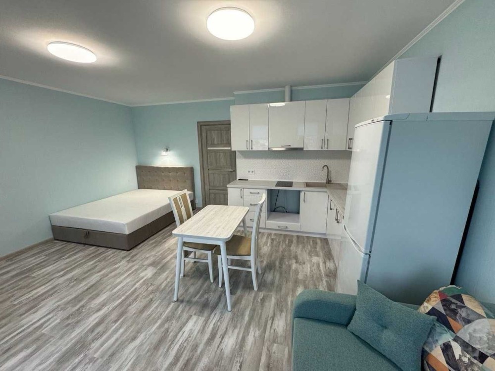Здається 1 кімнатна квартира-студіо з ремонтом, меблями та технікою. варочна електрична поверхня, бойлер, кондиціонер, 2-х камерний холодильник, пральна машина автомат, вбудована кухня, 2-х спальне ліжко, диван, обідній стіл, шафа-купе. Квартира знаходиться на 6 поверсі 7 поверхового будинку. Загальна площа - 33.1м.кв, житлова площа - 18.4м.кв. В самому будинку магазини, поштомат.