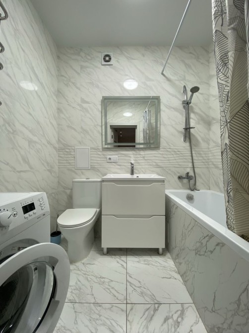 В квартирі є все необхідне: газова плита, двухконтурний котел, кондиціонер, посудомийна машина, пральна машина, витяжка, холодильник, духовка, телевізор.