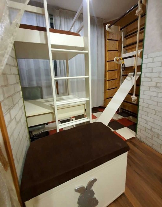 Є спортивний куточок для дитини, та робоча зона для роботи-навчання.