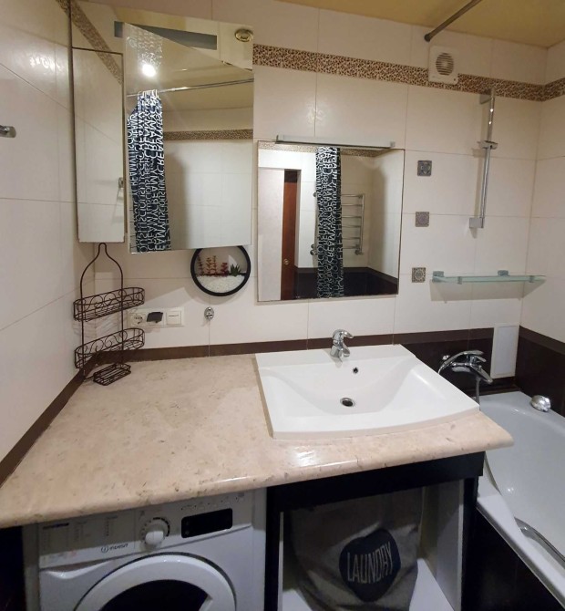 В квартирі є вся необхідна техніка: пральна машина з функцією сушки, 2 кондиціонера, холодильник, плита, духовий шкаф, мікрохвильова піч, тостер, телевізори, вай- фай працює навіть коли нема світла.