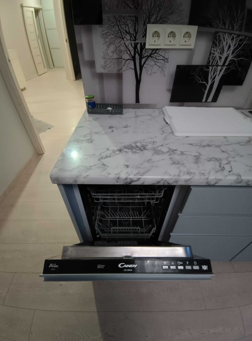 З меблями та максимальною кількістю побутової техніки, навіть посудомийна машина та праска.