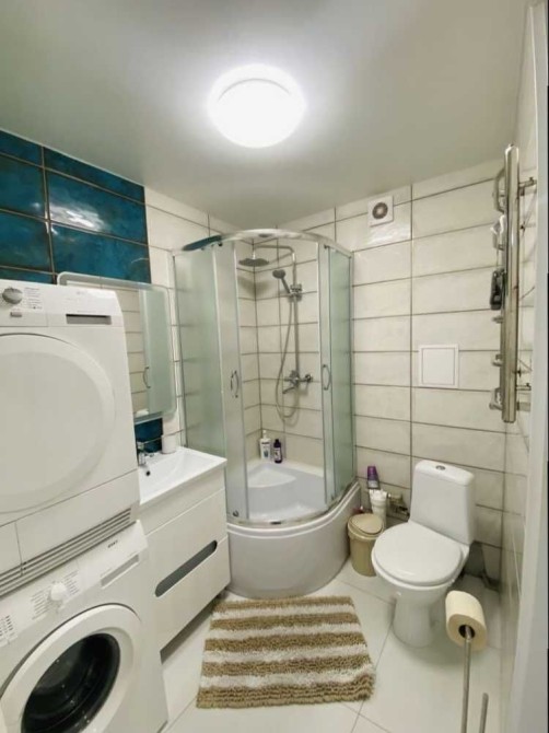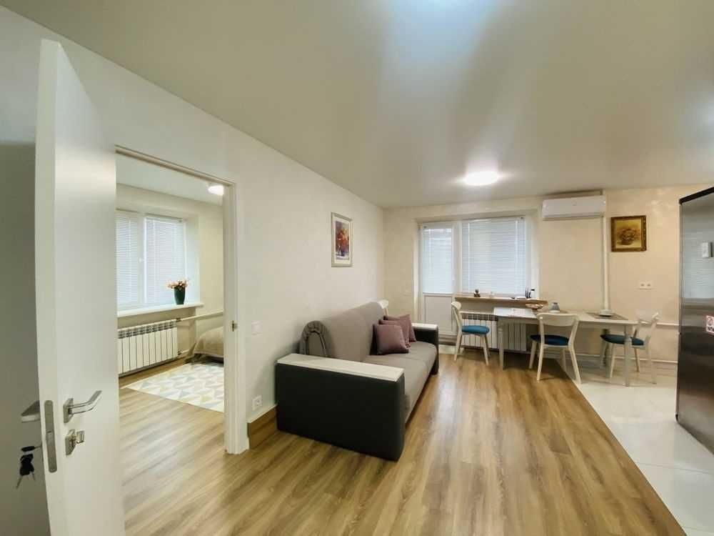 Є все необхідне для комфортного проживання: меблі, двохспальне ліжко, диван, пральна машина, холодильник,.