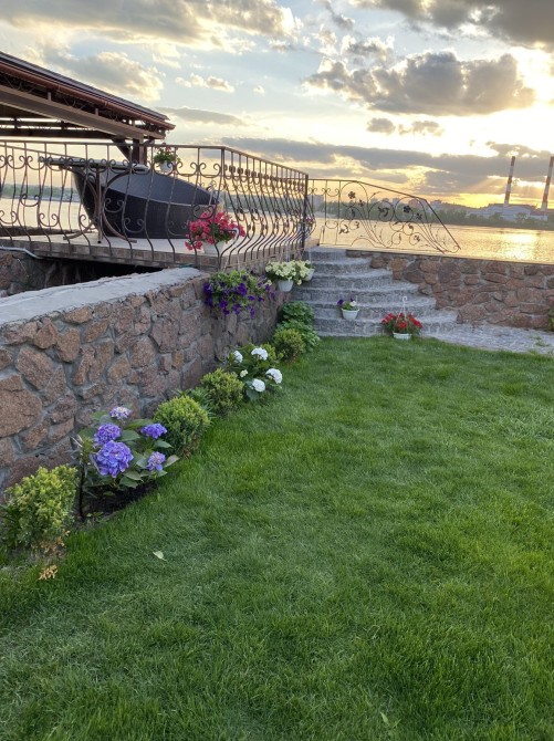 Ділянка 14 соток, газон з автополивом, крани поливальні, клумби з квітами.