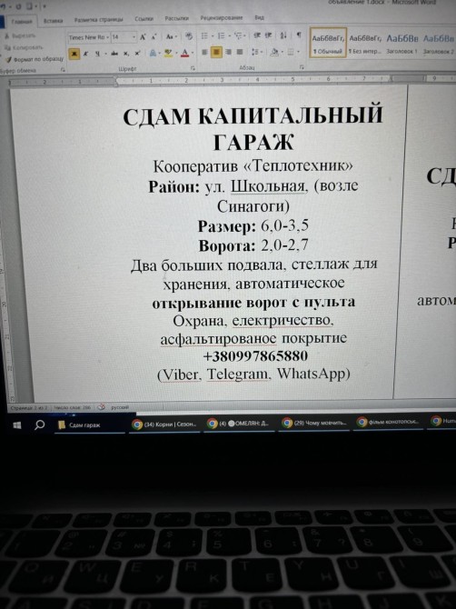 Здам капітальний гараж Кооператив Теплотехнік, вул. Шкільна, біля синагогі. Розмір 6×3,5. Ворота 2-2,7м. Два великих подвала, стілаж, автоматичне відкривання з пульта. Охорона, електроенергія, асфальтоване покриття. Тел: +38********80 (whatsapp, viber, telegram)