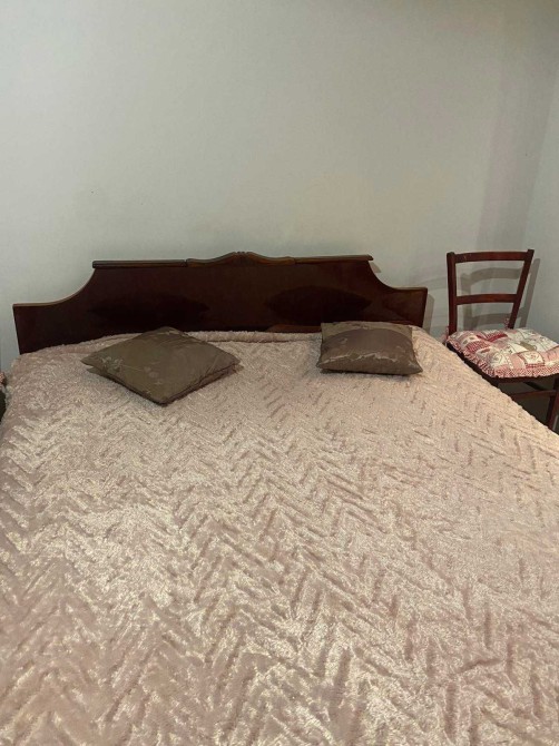 В кімнаті: двоспальне ліжко, меблева стінка, розкладний диван, стільці.