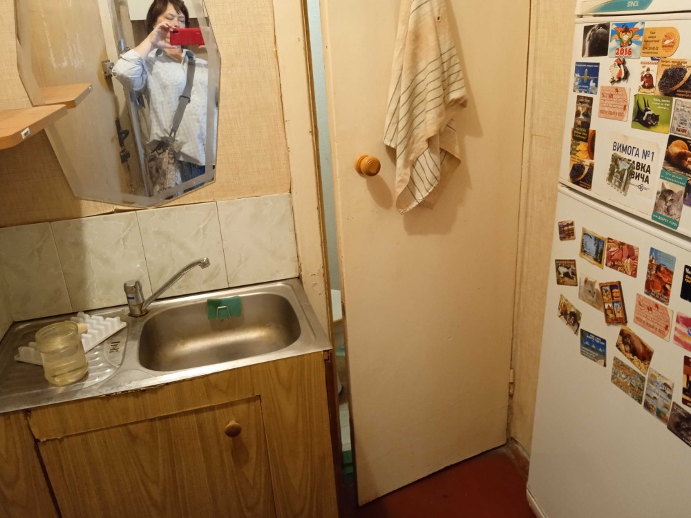 Кімната в комунальній квартирі зі своїм унітазом і умивальником, а кухня з газовою річкою і душ загальні на 3 кімнати. Є розводка води для підключення своєї пральної машини в кімнаті, також є свій холодильник, мікрохвильова піч і кухонні меблі в кімнаті. Не високий третій поверх і гарна транспортна локація, поруч озеро з пляжем, лікарні.