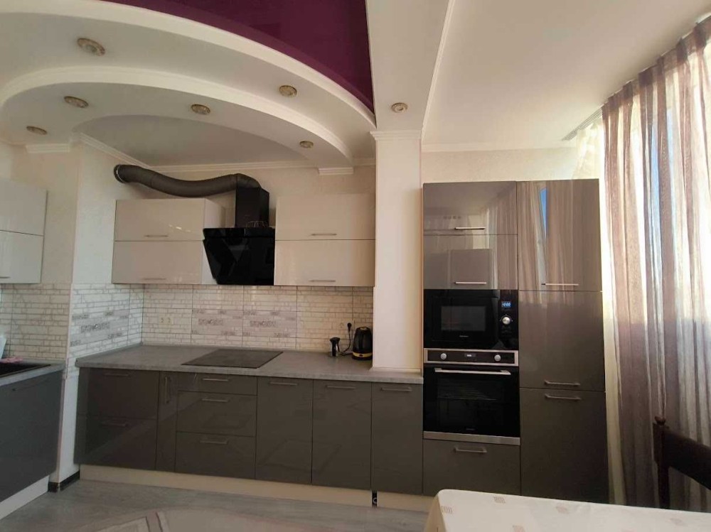 — простора кухня з сучасними меблями та вбудованою технікою