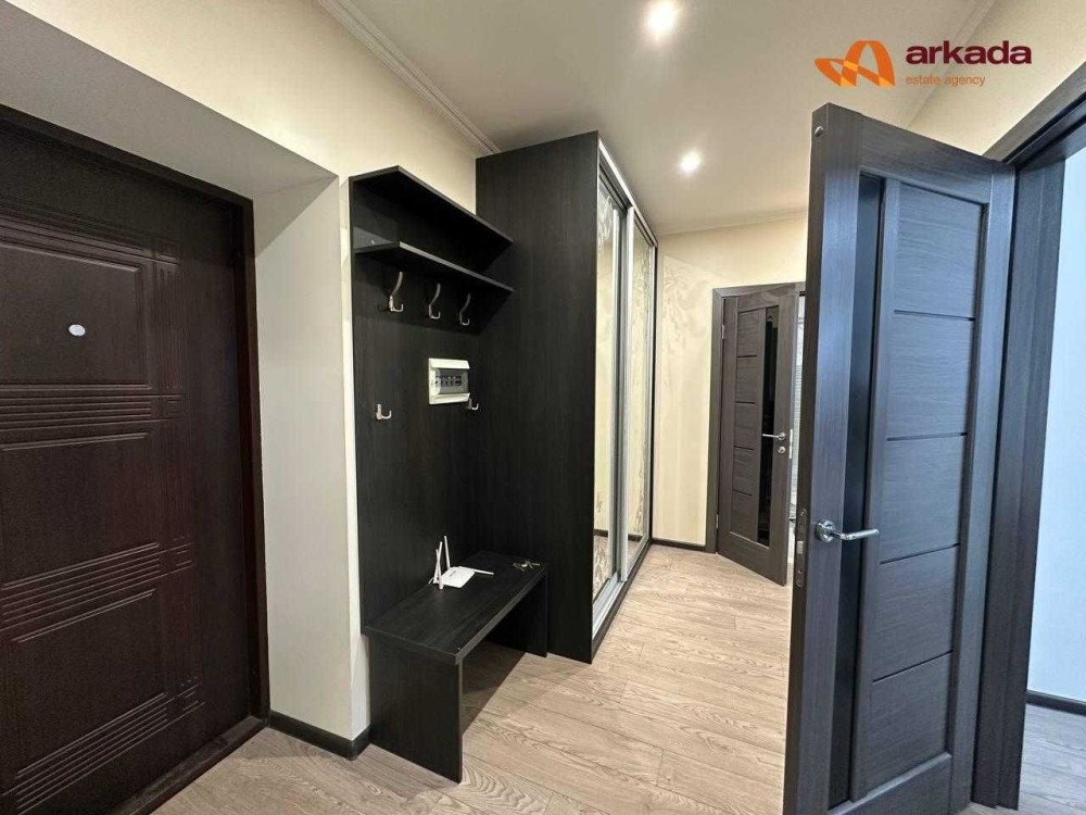 Розкладний диван, двоспальне ліжко, шафа-купе. Є шафа ще в коридорі. Додаткове місце.