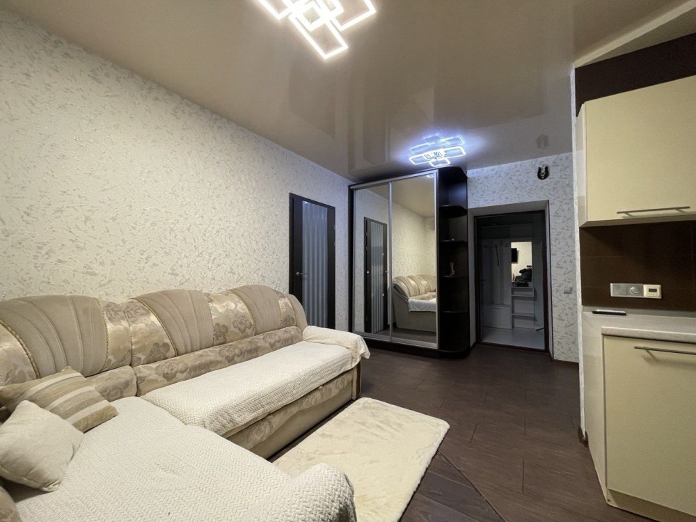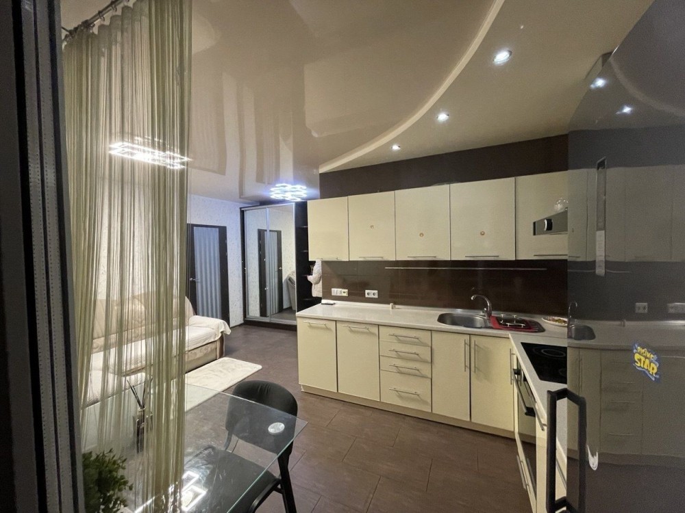 Кухня студія з диваном плюс окрема велика спальня.