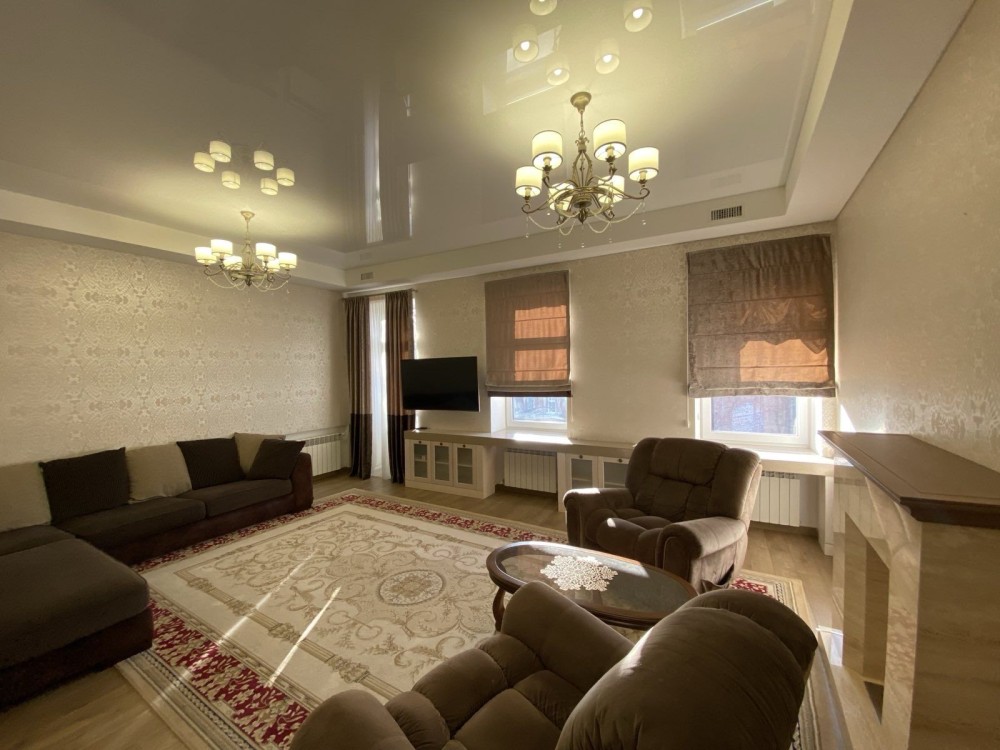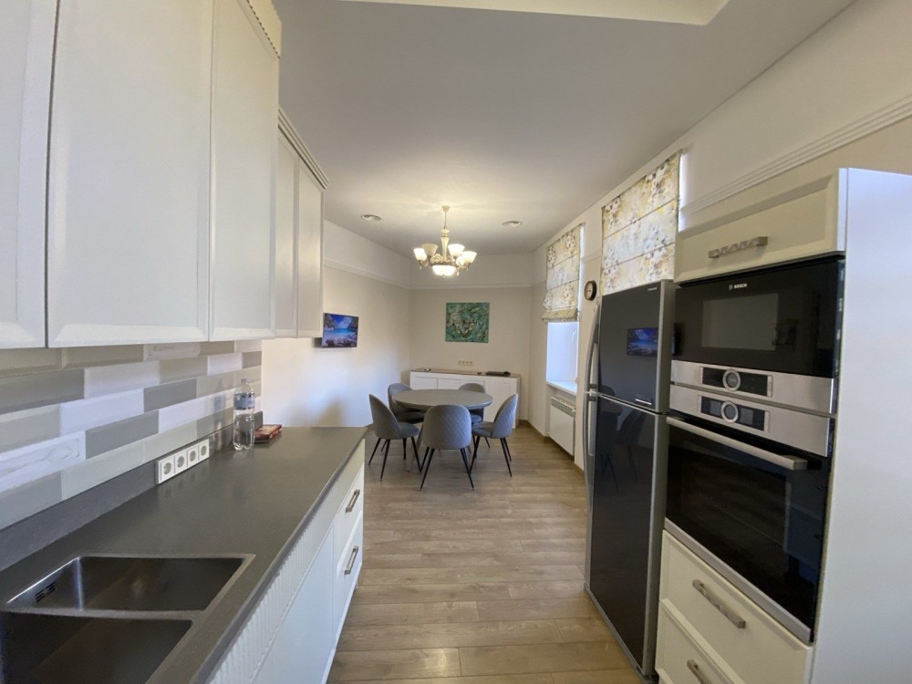 Квартира двоповерхова, простора, всі кімнати окремі, кухня - столова 30 м. кв., три санвузли. Загальна площа 217 м. кв.
